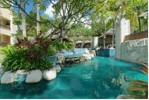 Fekvése: az 5 csillagos szálloda közvetlenül a homokos tengerparton fekszik, gyönyörű trópusi környezetben, 6 hektárnyi területen, Kuta üdülőhelyen, a központtól nem messze helyezkedik el. A közelben egy nagyobb bevásárlóközpont található. Ngurah Rai Nemzetközi Repülőtértől 5 perc távolságra.