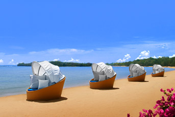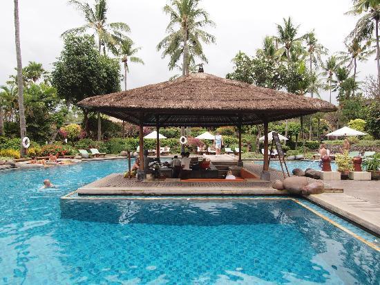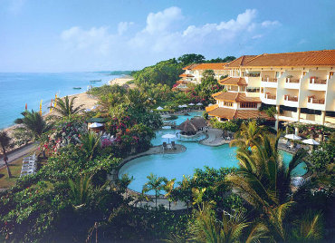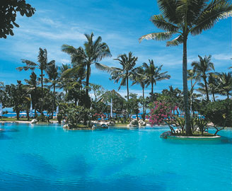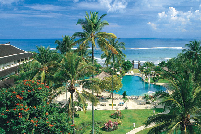 Fekvése: az elegáns, 5 csilagos szálloda közvetlenül a finomhomokos tengerparton fekszik, Nusa Dua üdülőhelyen, gyönyörű, trópusi kertben helyezkedik el. A minden igényt kielégítő luxushotelben a modern és a hagyományos balinéz építészet elemeinek keveréke várja a vendégeket. A buja trópusi kertben megbúvó halastavak feledhetetlen hangulatot árasztanak. A repülőtér 30 perc távolságra. A tengerben úszni csak dagálykor lehet.