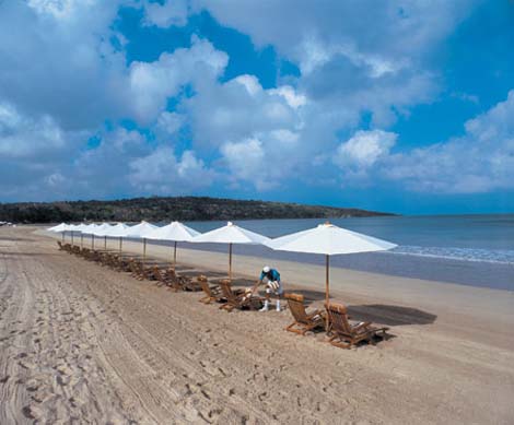 Fekvése: az 5 csillagos szálloda közvetlenül a fehérhomokos tengerparton, Bali egyik legszebb tengerpartján Jimbaran Bay-en található. Exkluzív hotel együttes, elegáns trópusi környezetben, színvonalas szolgáltatásokkal, a repülőtértől 15 percnyi transzferútra.