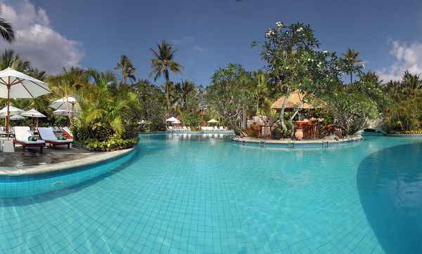 Fekvése: az 5 csillagos szálloda közvetlenül a homokos tengerparton fekszik, Sanur üdülőhelyen, gyönyörű, zöld környezetben helyezkedik el. A klasszikus balinéz stilusban épült hotel Denpasar repülőtértől 15 km távolságra található.