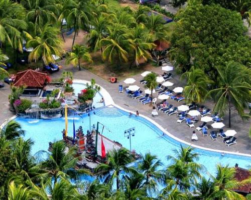 Fekvése: az 5 csillagos szálloda a homokos tengerparttól 50 méterre fekszik, a híres Kuta Beach-en, szép, pálmafás kertben helyezkedik el. A hotel a központ közelében található, gyalogos távolságra bevásárlási és szórakozási lehetőségek.
