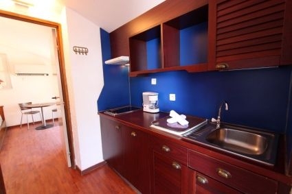A típusú apartman (18 m2): egyszobás, 2 fő részére, lakó nappali kihúzható ággyal és babaágy 4 éves korig, légkondicionáló (térítés ellenében, korlátozott számban), mini széf (8.-euro/hét), felszerelt konyhasarok, mikró, elektromos kávéfőző, mosogatógép, fürdőszoba, zuhanyzó, WiFi internetezési lehetőség, terasz kerti bútorokkal.