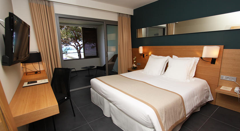 Deluxe szoba: 48 m2, légkondicionáló, műholdas televízió, CD/DVD lejátszó, telefon, széf, minibár, fürdőszoba, fürdőköpeny, hajszárító, WiFi internetezési lehetőség, 15m2-es terasz, gyönyörű kilátás Porto Vecchio öbölre.