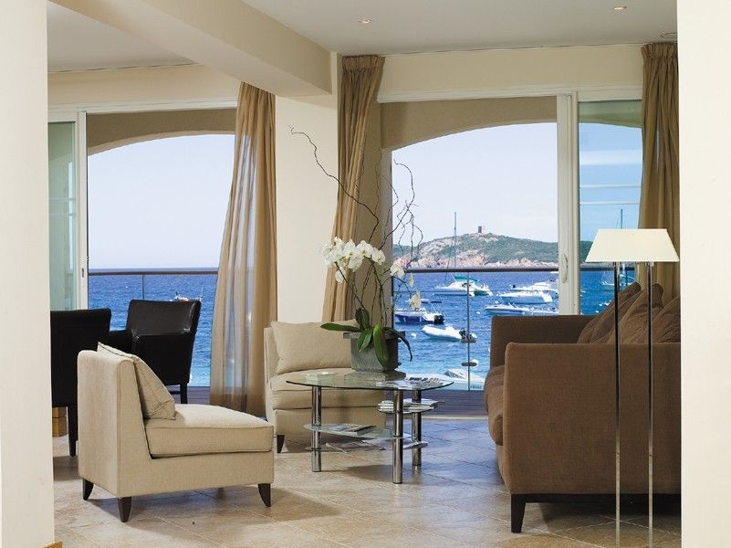 Deluxe Junior Suite: 53 m2, külön nappali és hálószoba, légkondicionáló, műholdas televízió, CD/DVD lejátszó, telefon, széf, minibár, fürdőszoba, fürdőköpeny, hajszárító, WiFi internetezési lehetőség, 30m2-es terasz, gyönyörű kilátás Porto Vecchio öbölre.