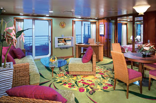 - Deluxe Penthouse: a legtöbb kabinban a külön ágyak franciaággyá alakíthatók, televízió, hűtőszekrény, fürdőszoba, hajszárító.