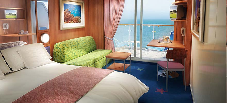 - Balkonos kabin (16 m2): a legtöbb kabinban a külön ágyak franciaággyá alakíthatók, televízió, hűtőszekrény, fürdőszoba, hajszárító.