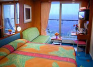 - Mini lakosztály (21 m2): a legtöbb kabinban a külön ágyak franciaággyá alakíthatók, televízió, hűtőszekrény, fürdőszoba, hajszárító, üvegfal, saját erkély.