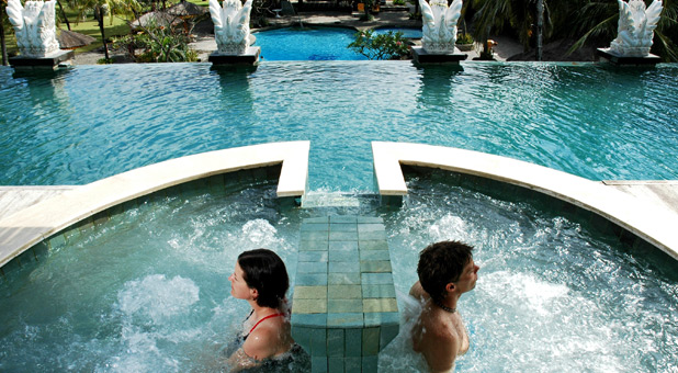 Fekvése: a meghitt és elegáns, 4 csillagos szálloda közvetlenül a homokos tengerparton, Bali új üdülőrészén, Benoán található. Gazdag trópusi növényzettel díszített kert, barátságos személyzet és kellemes kiszolgálás és az all inclusive kényelem várják az ideérkező vendégeket. Elhelyezkedése ideális a nyaralók számára, hiszen közel van a repülőtérhez, a közelben több látnivaló, (Bali híres templomai). A wellness szálloda egyedülálló spa szolgáltatásaival a pihenni vágyóknak garantálja a tökéletes kikapcsolódást.