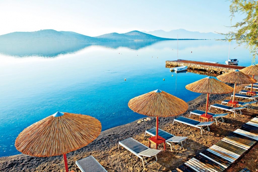 Fekvése: az 5 csillagos luxusszálloda közvetlenül a homokos tengerparton fekszik, egy festői öbölben, Elounda településen található, Agios Nikolaos-hoz közel helyezkedik el. Az elegáns hotel több épületből áll, tipikus görög stílusban épült, gyönyörű kertekkel övezve, csodálatos kilátással a Spinalonga-félszigetre. Heraklion repülőtér 65 km távolságra.