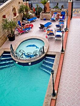 Fekvése: a 4 csillagos szálloda közvetlenül a sziklás tengerparton, Qawra üdülőhelyen, hatalmas kertben, a központtól 1km-re helyezkedik el. A szálloda kertjében található az eredeti állapotában megmaradt ókori kőtemplom (dolmen). Menetrendszerinti buszmegálló 50 méterre, buszjáratok Vallettába és a sziget többi üdülőhelyére.100 méterre éttermek, bárok, 250 méterre mesterségesen kialakított homokos strand, a repülőtér 18 km távolságra.