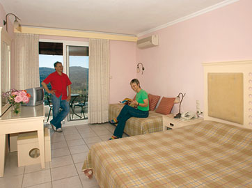 Családi szoba: 2 felnőtt+ 2 gyermek részére, a főépületben, nagyobb méretűek, légkondicionáló, műholdas televízió, telefon, széf (térítés ellenében), hűtőszekrény, fürdőszoba, hajszárító, tengerre néző balkon vagy terasz.
