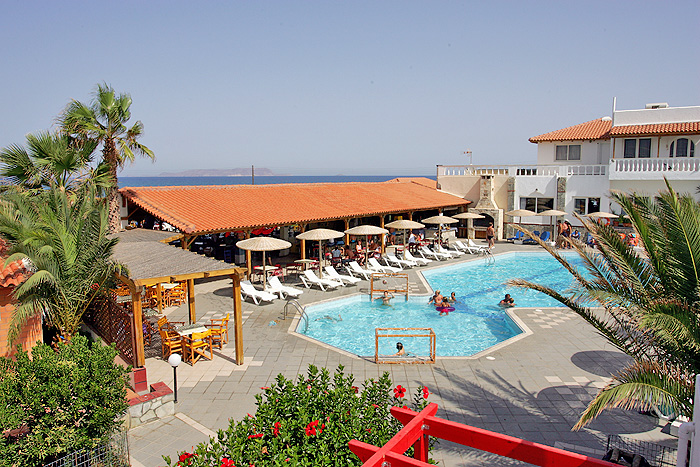 Fekvése: a 3 csillagos barátságos szállodát a homokos-kavicsos tengerparttól csak parti út választja el, Analipsi üdülőhelyen, nyugodt környezetben, a központtól 500 méterre található. A homokos, nyilvános strand 170 méterre található. A hotel 1 főépületből és 2 szintes sorbungalókból áll, szép kertben, nagy területen helyezkedik el. Hersonissos 3 km, a repülőtér 18 km, Heraklion 20 km, Knossos Palace 25 km távolságra.