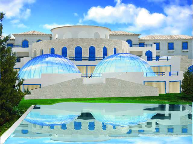 Fekvése: az elegáns, 5 csillagos szálloda közvetlenül a hosszú, homokos-kavicsos tengerparton fekszik, exkluzív környezetben, nagy területen helyezkedik el. 2011. májusában nyíló szálloda elsőoszályú kényelemmel, magas színvonalú szolgáltatásokkal, nemzetközi konyhával és csodálatosan kialakított wellness központtal gondoskodik a felejthetetlen nyaralásról. A hotel 1 főépületből és több bungalóépületből áll. Menetrendszerinti buszmegálló a szálloda mellett, Hersonissos központja 3 km, Heraklion repülőtér 22 km távolságra.