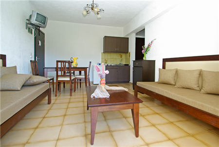 Családi szoba: 45 nm - 1 légterű, központi légkondicionáló, műholdas televízió, telefon, széf, minibár, kávé/teafőző, internet csatlakozó, fürdőszoba, hajszárító, kertre néző balkon vagy terasz. 2 felnőtt + 1-2 gyermek, 3 felnőtt, 3 felnőtt + 1 gyermek vagy 4 felnőtt részére.