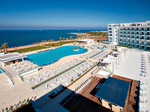 Fekvése: 2014 májusában nyílt vadonatúj 5 csillagos luxusszálloda, közvetlenül a homokos tengerparton fekszik, hatalmas területen helyezkedik el. Paphos városközpontja az Archeológiai kerttel és a kikötővel 5 km-re található. A szálloda privát strand klubbal rendelkezik, a kertben több medence és Csúszdapark (térítéses) található. A larnacai repülőtér 140 km távolságra.