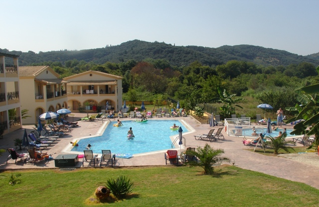 Fekvése: a 3 csillagos aparthotel a homokos tengerparttól 1,5 km-re fekszik, szépen gondozott kertben, csendes, nyugodt környezetben helyezkedik el. A hotel a Sidarihoz tartozó Peroluades falucskában, Korfu egyik legszebb fekvésű településén, a sziget észak-nyugati nyúlványának legszélén, Sidari központjától 15 perc sétára található. Felejthetetlen élményt nyújtanak az innen látható sziklaképződmények. A repülőtér 27 km távolságra.