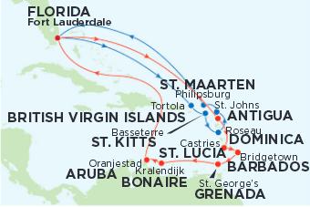 Útvonal: Fort Lauderdale (Florida) - Tortola (Brit Virgin-szigetek) - Basseterre (St. Kitts) - Roseau (Dominika) - St. Johns (Antigua) - Philipsburg (St. Maarten) - Fort Lauderdale (Florida)