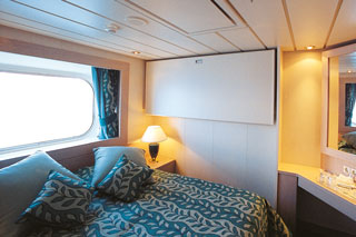 - Külső kabin: 339 darab, 12 m2 , francia ágy (igény esetén 2 db szimpla ágy), légkondicionáló, televízió, telefon, minibár, széf, fürdőszoba zuhanyzóval, internetezési lehetőség (térítés ellenében). Fantastica vagy Wellness szolgáltatással
