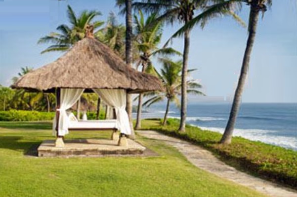 Fekvése: az 5 csillagos szálloda közvetlenül a tengerparton fekszik, egy 7 méter magas sziklán helyezkedik el, lenyűgöző kilátással az óceánra és a Tanah Lot templomra. A luxushotel 103 hektáros területen, gyönyörű, trópusi kertben, Bali déli részén, a Tanah Lot templom közelében helyezkedik el. A repülőtér 25 km távolságra.