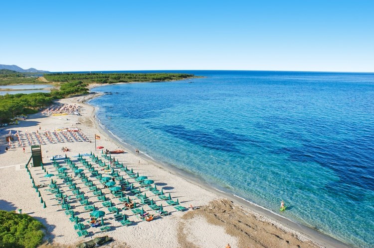 Fekvése: közvetlenül a fehérhomokos tengerparton fekszik. A repülőtértől (Cagliari) 80 km-re, városközponttól 10 km-re, Arbataxtól 80 km-re található.