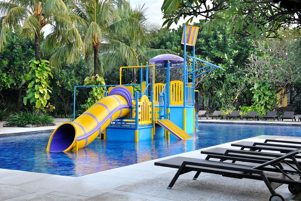 Felszereltség: recepció, lobby, konferenciaterem, 2 úszómedence gyermekrésszel, napozóterasz, medencebár, éttermek (európai, ázsiai, balinéz), bárok, kávézó, wellness központ, szauna, masszázs, szobaszerviz, mosoda, gyermekfelügyelet, üzletek, internetezési lehetőség, pénzváltó, autóbérlés.