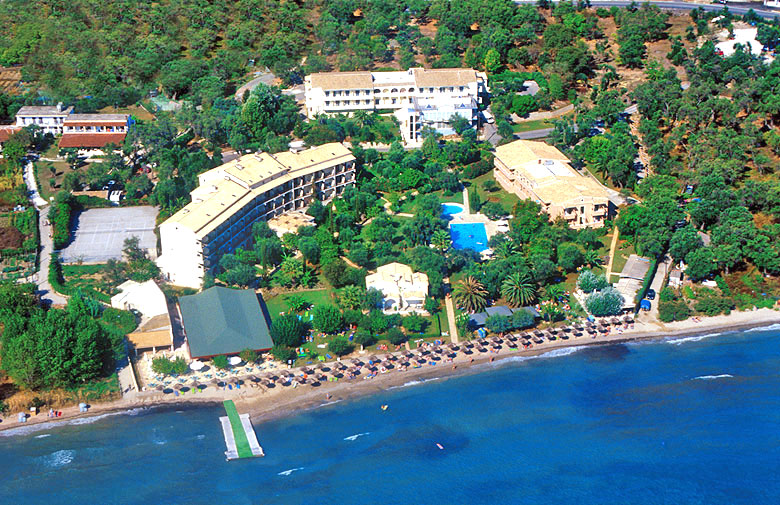 Fekvése: a 4 csillagos szálloda közvetlenül a homokos tengerparton fekszik, Acharavi üdülőhelyen, a központtól 2 km-re helyezkedik el. A hotel 1 főépületből és több 2 szintes bungalóból áll. A repülőtér és Korfu város 39 km távolságra. Elsősorban kisgyermekes családoknak, pihenésre, nyugalomra vágyó pároknak ajánljuk.