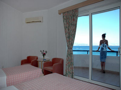 Családi szoba: 2 felnőtt+ 2 gyermek részére, a főépületben, nagyobb méretűek, légkondicionáló, műholdas televízió, telefon, széf (térítés ellenében), hűtőszekrény, fürdőszoba, hajszárító, tengerre néző balkon vagy terasz.