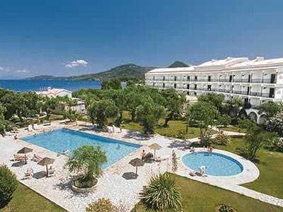 Fekvése: a 4 csillagos szálloda közvetlenül a homokos tengerparton fekszik, Alykes üdülőhelyen, gyönyörű zöld környezetben, nagy területen helyezkedik el. Korfu városa 3 km, a repülőtér 5 km távolságra.