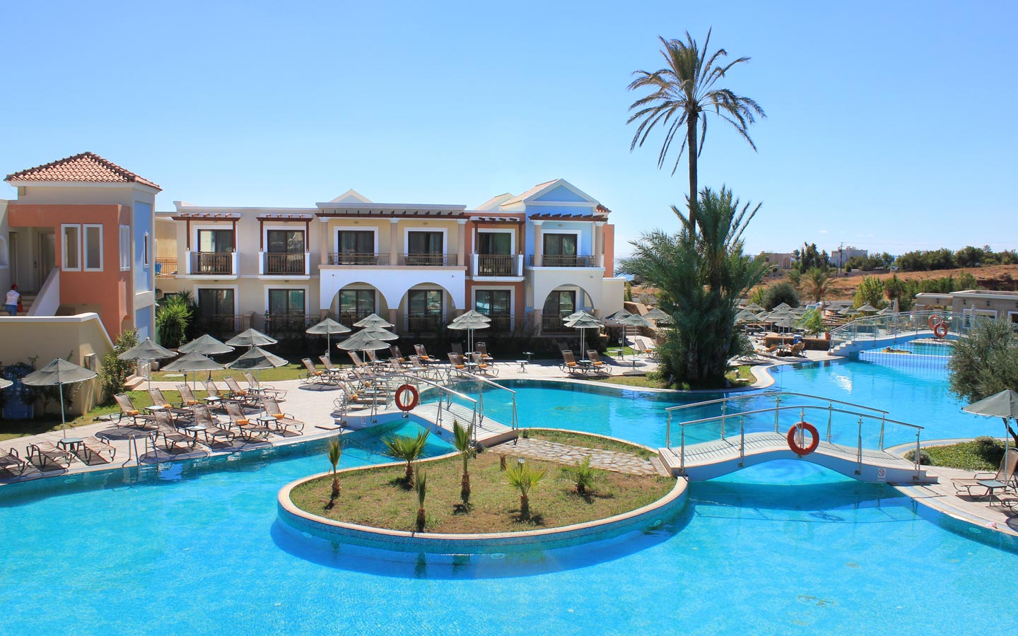 Fekvése: az 5 csillagos szálloda a homokos-kavicsos tengerparttól 50 méterre fekszik, Kolymbia üdülőhelyen, a központtól gyalogosan néhány perc távolságra. Az elegáns hotel 1 főépületből és több bungalóépületből áll. Rodosz város 28 km-re, a repülőtér 90 percre található.