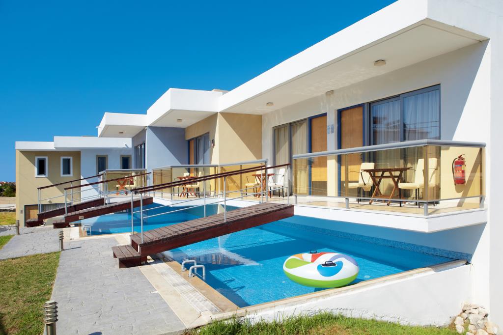 Grand Maisonettes: 96 m2: 4-8 fős, 2 szintes, tengerre néző saját, fűtött úszómedence, jacuzzi, légkondicionáló, műholdas televízió, telefon, széf (térítés ellenében), hűtőszekrény, minibár (lekérésre, térítés ellenében), internet csatlakozó, fürdőszoba, hajszárító, tengerre néző balkon.
