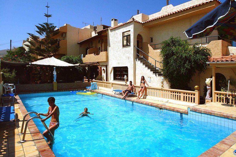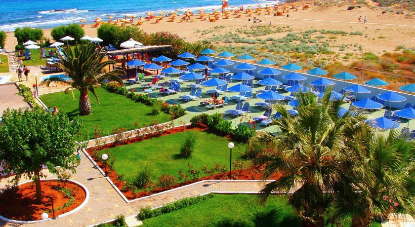 A családbarát hotel főépületből és bungalóépületekből áll. Menetrendszerinti buszmegálló 150 méterre, Hersonissos 3 km-re, Malia 5 km-re, Heraklion 30 km-re található.