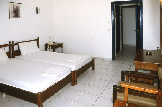 Standard szoba: az egyszerűen, görög stílusban berendezett, 2-3 ágyas szobákhoz légkondicionáló (5.- euro/nap), televízió, telefon, széf (14.- euro/hét), balkon tartozik.