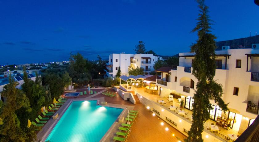 Fekvése: a helyi stílusban épült, barátságos 3 csillagos szálloda a homokos tengerparttól 350 méterre fekszik, Stalis üdülőhelyen, a központtól 500 méterre helyezkedik el. A mediterrán hangulatú hotel 1 főépületből és 1 melléképületből áll, szép kertben, nyugodt környezetben található. Menetrendszerinti buszmegálló a közelben.