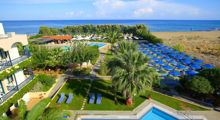 Fekvése: a kisebb, kedvelt, 3 csillagos szálloda kiváló fekvéssel a szép homokos strand mellett. kiváló fekvéssel rendelkezik az ismert Almiros Beach strandon. Nevét az Almiros-folyóról kapta, mely épp itt torkollik a tengerbe. A felújított, kellemes hotel egy gondozott kertben, nyugodt környezetben helyezkedik el. Menetrendszerinti buszmegálló 100 méterre, Agios Nikolaos város - ahol számos étterem, bá, szórakozási és vásárlási lehetőség 2 km-re, Heraklion főváros és a repülőtér 70 km-re található.
