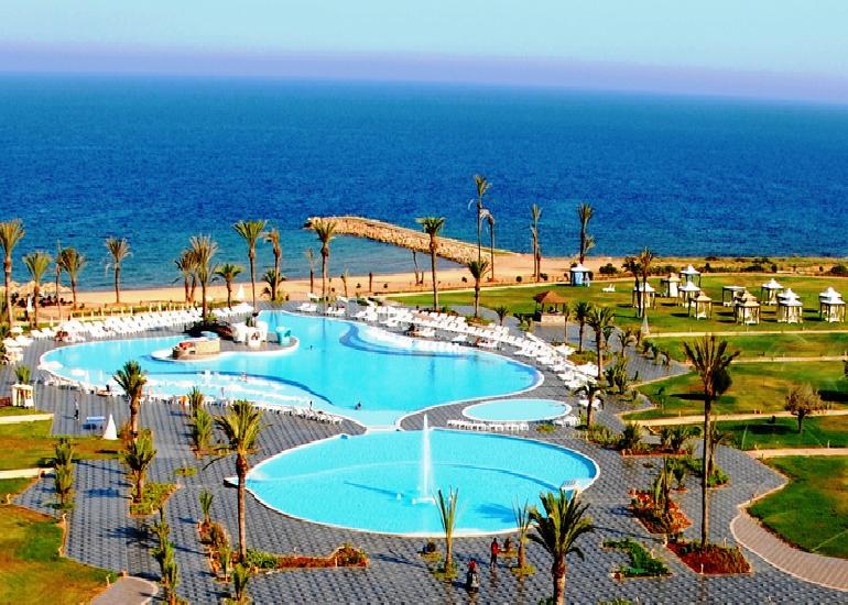 Fekvése: az 5 csillagos szálloda közvetlenül a finomhomokos tengerparton fekszik, 65.000 m2-en terül el, Famagusta üdülőhelyen, a központtól 6 km-re helyezkedik el. A hotel buszjáratot üzemeltet a városközpontba (térítés ellenében). Ercan repülőtér 54 km, Larnaca repülőtér 66 km-re található.