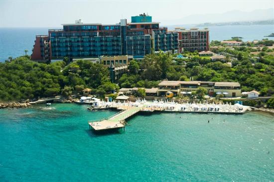 Fekvése: az 5 csillagos szálloda közvetlenül a homokos, helyenként sziklás tengerparton, egy kis öbölben fekszik, egy 34 000 nm-es területen terül el. Kyrenia városközpont 10 km, ahova a szálloda ingyenes buszjáratot üzemeltet, meghatározott időpontokban. Ercan repülőtér 45 km távolságra.