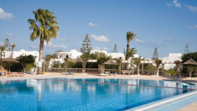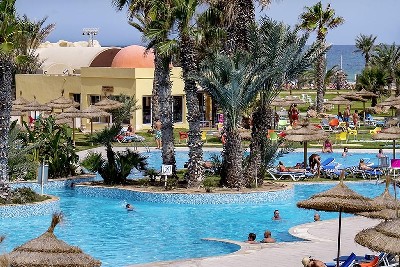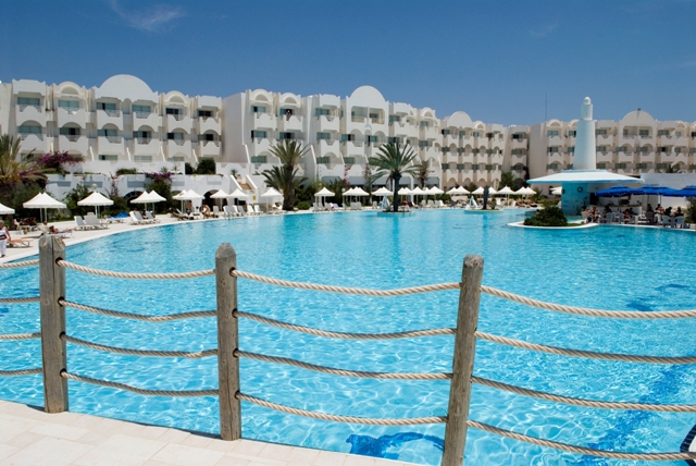 Fekvése: a 4 csillagos szálloda a homokos tengerparttól 400 méterre fekszik, Djerba turisztikai központjában, egy csodálatos 6 hektáros kertben helyezkedik el. A repülőtér 25 km távolságra. A tengerpartra a szálloda kisvonata viszi le a vendégeket. Elsősorban családközpontú szálloda, de a szolgáltatások széles skálája miatt minden korosztály számára ajánljuk.
