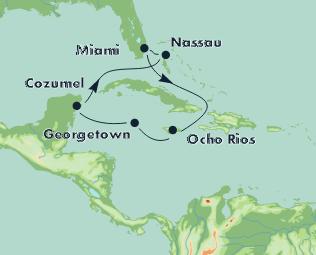 Útvonal: Miami (Florida) - Ocho Rios (Jamaica) - Georgetown (Kajmán-szigetek) - Cozumel (Mexikó) - Nassau (Bahama-szigetek) - Miami (Florida)