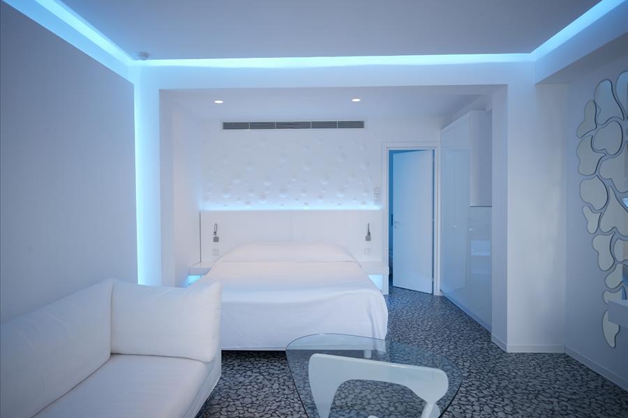 Mini lakosztály: 2-3 ágyas, luxus berendezésű első emeleti szobákhoz, légkondicionáló, műholdas televízió, telefon, széf, minibár, kávé/teafőző, fürdőszoba, hajszáritó, oldalt tengerre néző kilátás, privát terasz, napernyő, közös kerti jacuzzi tartozik.