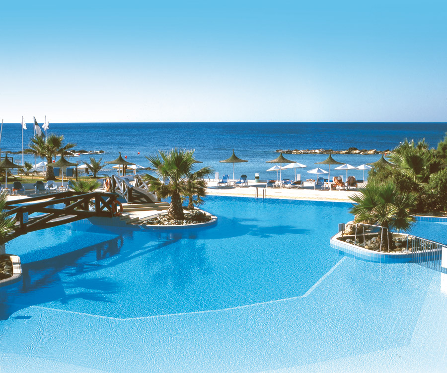 Fekvése: az elegáns, 5 csillagos szálloda közvetlenül a tengerparton fekszik, Paphos üdülőhelyen, a Régészeti Park közelében helyezkedik el. A hotelből gyönyörű kilátás nyílik a Földközi-tengerre. Paphos festői kikötője 2 km-re található.