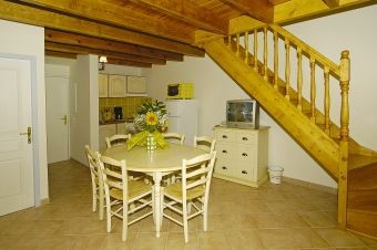 C típusú apartman (75 m2): 4 szobás és hálófülkés, 6-8 főre, 3 hálószoba franciaággyal, egyik a galérián, hálófülke emeletes ággyal, nappali kihúzható ággyal, felszerelt konyhasarok, fürdőszoba, medencére néző terasz (12 m2) kerti bútorokkal.