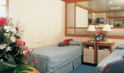- Deluxe tengerre néző kabin: 19 nm - franciaágy, műholdas televízió, telefon, széf, hűtőszekrény, asztal, gardrób, fürdőszoba, zuhanyzó, hajszárító, ablak.
