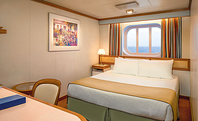 - Deluxe tengerre néző kabin: 18 nm - franciaágy, műholdas televízió, telefon, széf, hűtőszekrény, asztal, gardrób, fürdőszoba, zuhanyzó, hajszárító, ablak.
