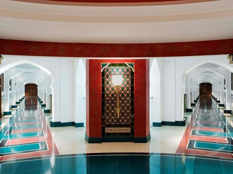 Felszereltség: 24 órás recepció, lobby, konferenciatermek, a szálloda teljes körű szolgáltatást nyújtó gyógyfürdővel, valamint 8 étteremmel és bárral várja a vendégeket, egyedi, Al Mahara nevű étterme tengeri különlegességeket kínál, és az akváriumba néző expanzív üvegfallal, valamint a 200 méteres tengerszint feletti magasságban felfüggesztett The Sky View bárral várja a vendégeket. Az Al Muntaha étterem délutáni teákra és koktélokra egyaránt ideális. wellness központ, szauna, jacuzzi, masszázs, fedett medence (egész évben nyitva).