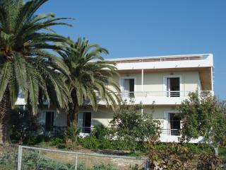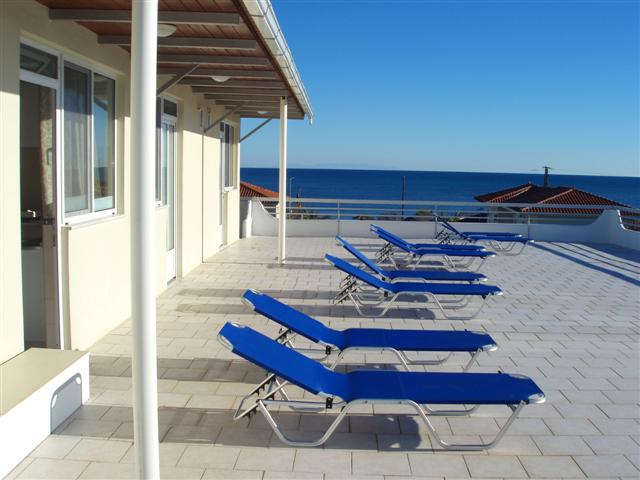 Fekvése: az apartmanház a homokos tengerparttól 100 méterre fekszik, Laganas üdülőhelyen, a központtól 10 perces sétára helyezkedik el. A ház különlegessége az óriási közös terazs, ahonnan csodálatos kilátás nyílik a Jón-tengerre.A közelben éttermek, bárok, üzletek találhatók.
